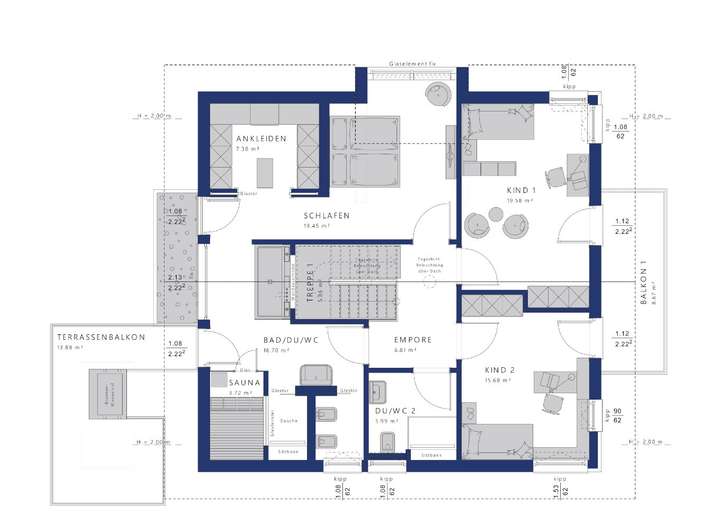 Die Ausbaustufe "Schlüsselfertig" macht den Bau Ihres neuen Zuhauses so angenehm wie möglich. Sie müssen sich um nichts kümmern, denn wir übernehmen den kompletten Hausbau samt Innenausbau für Sie - vom Fundament bis zur letzten Schraube. Sie können sich entspannt zurücklehnen und die Vorfreude auf Ihr neues Zuhause genießen, während wir alles Notwendige für Sie erledigen. So sparen Sie Zeit, Nerven und Planung, und können sich darauf freuen, bald in Ihr neues, schlüsselfertiges Zuhause einzuziehen.