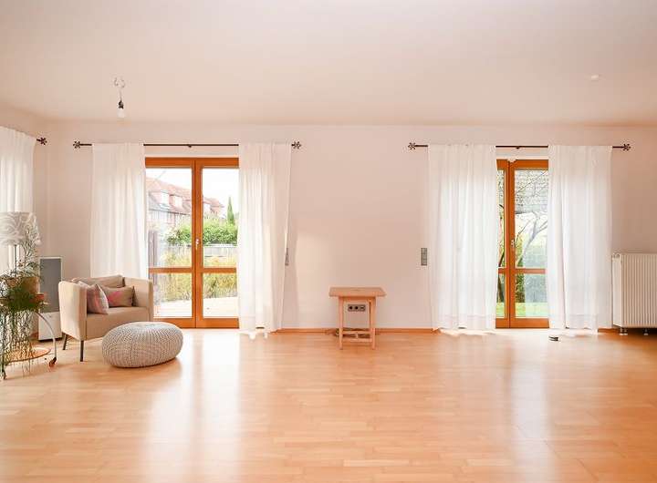 - Lichtdurchflutete Räume durch große 2-fach verglaste Holzfenster