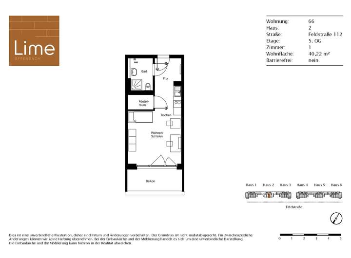 Die hier angebotene Wohnung ist Teil des Projektes LIME in Offenbach Lindenfeld. Auf ca. 40 m² erwartet Sie ein praktisch geschnittener Wohn- und Schlafbereich mit Einbauküche und Balkon. Ein modernes Bad mit Waschmaschinenanschluss, die Teilmöblierung sowie die vorhandene Küche bieten einen guten Austattungskomfort. Der Design-Vinylboden im Wohn- und Schlafbereich und eine durchgehend verlegte Fußbodenheizung runden das Bild stimmig ab.
