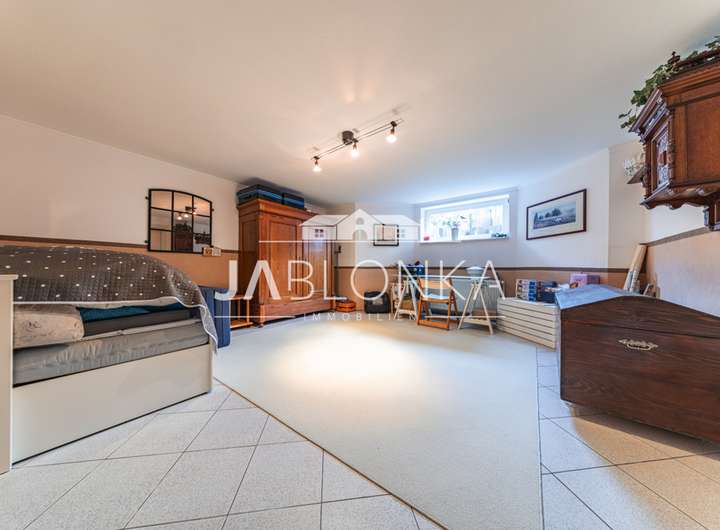 Das Untergeschoss überrascht mit wohnähnlichem Charakter: hohe Decken, Tageslicht und Heizung – ideal für Hobby, Arbeiten oder einfach mehr Platz für die Familie.