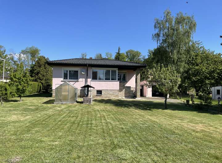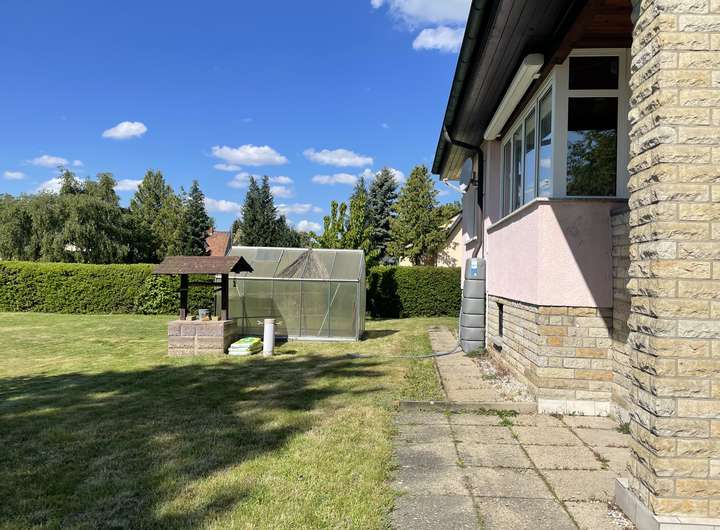 Das nach Süden ausgerichtete Grundstück ist bereits gärtnerisch schön und zugleich pflegeleicht angelegt, ein Gewächshaus ist ebenfalls vorhanden. Eine Garage mit elektrischem Tor gestattet es bei Bedarf z.B. ein Elektroauto zu laden (normaler 230V- Steckdosen).