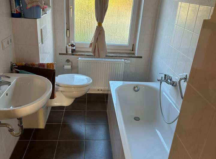 Das helle und sehr freundliche Einfamilienhaus wurde frisch modernisiert, eine zeitgemäße Luft- Wasser- Wärmepumpe verbaut, neuer Laminat- Bodenbelag verlegt, weiß tapeziert und gemalert, das Dusch- Badezimmer erneuert und die Elektrik überarbeitet. Sie haben hier die Möglichkeit einen Erstbezug nach umfangreicher Modernisierung anzumieten.