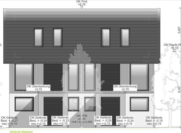 Eine Baugenehmigung für ein Doppelhaus (2 Doppelhaushälften) liegt vor:
