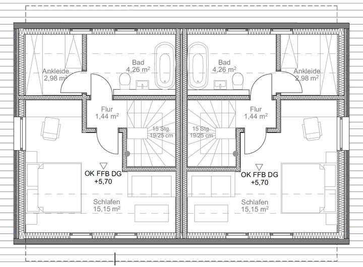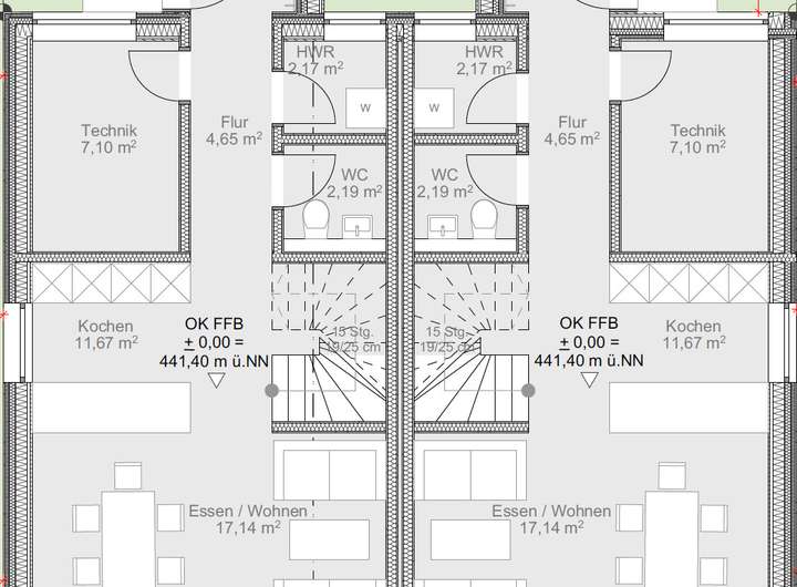 - Doppelhaus mit ca. 220 m² Wohnfläche (ca. 110m² je Doppelhaushälfte bei Bau auf Bodenplatte)