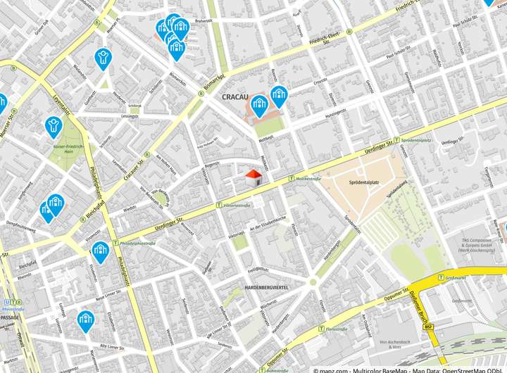 Die Uerdinger Straße 116 liegt in zentraler innerstädtischer Lage von Krefeld, im Übergang zwischen der Innenstadt und dem beliebten Stadtteil Cracau/Bismarckviertel. Dieses Quartier gilt als „grüne Mitte“ Krefelds: Gewachsene Wohnstraßen mit viel altem Baumbestand, attraktiver Gründerzeit- und Nachkriegsbebauung und einer sehr guten Durchmischung aus Wohnen, Arbeiten und Dienstleistung.