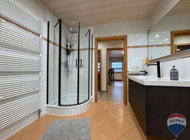 Im Inneren sorgen hochwertige Fliesen und Teppichböden für ein angenehmes Wohngefühl. Die Infrarotsauna im Erdgeschoss sorgt für entspannende Wellnessmomente im eigenen Zuhause.