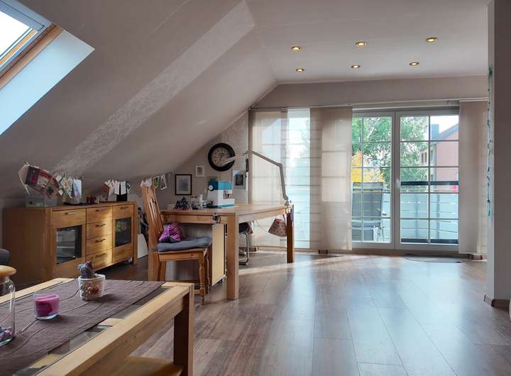 Der Balkon ist ideal, um die Sonne zu genießen. Das Balkonkraftwerk mit Einspeisung hilft, Energie nachhaltig zu nutzen. Doppelverglaste Holzfenster verbessern die Energieeffizienz und machen das Wohnen nachhaltiger und angenehmer.