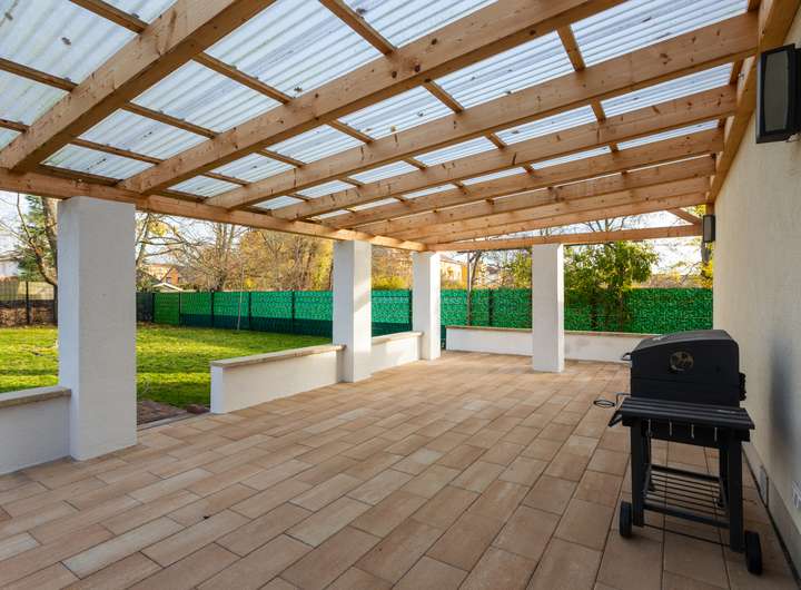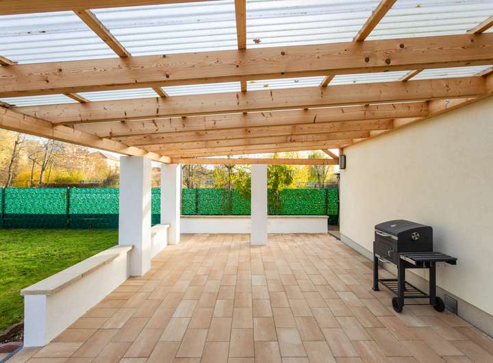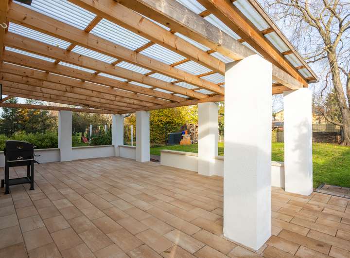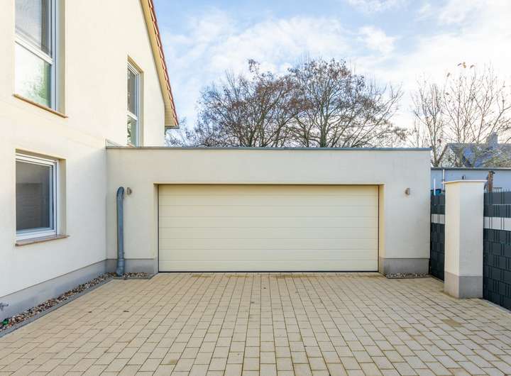Am Haus ist eine massive 42 qm große Doppelgarage, mit Sektionaltor angebaut.