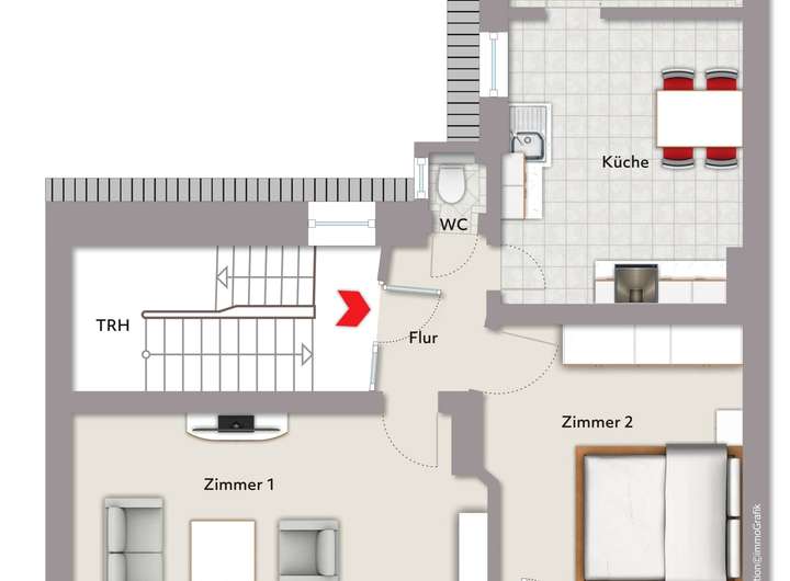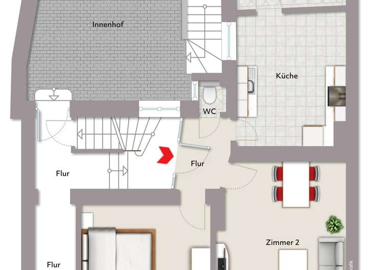 Die Einheit im 1. Obergeschoss ist seit März 1987 ununterbrochen an die gleiche Mieterin vermietet und gewährleistet damit eine langfristig stabile Mieteinnahme. Die Wohnungen im Erdgeschoss und 2. Obergeschoss wurden zuletzt vom Eigentümer selbst genutzt und werden vollmöbliert verkauft. Beide sind durch laufende Modernisierungen in den letzten Jahren in einem vermietungsfertigen Zustand, sodass eine sofortige Neuvermietung problemlos möglich ist – sei es im klassischen Segment oder als möbliertes Wohnen auf Zeit.