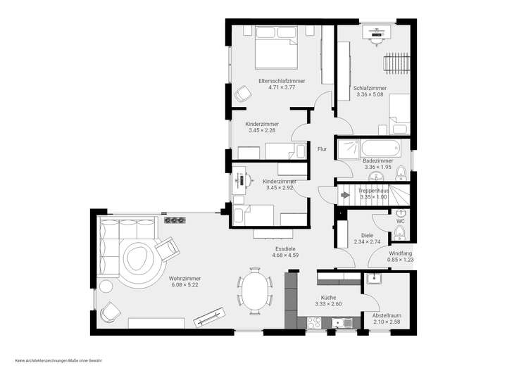 Hinweis: Die in diesem Exposé genannten Angaben basieren auf Auskünften des Auftraggebers. Trotz sorgfältiger Prüfung der Objektangaben kann keine Gewährleistung, Haftung oder Garantie der Daten übernommen werden. Der Grundriss dient der Information, ist nicht maßstabsgerecht und somit nicht zur Maßentnahme geeignet.