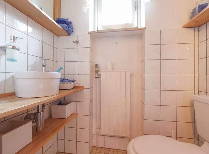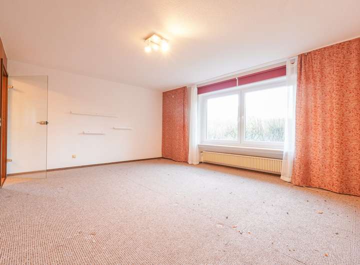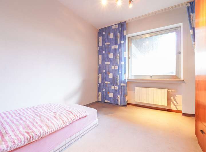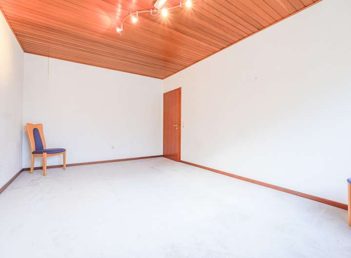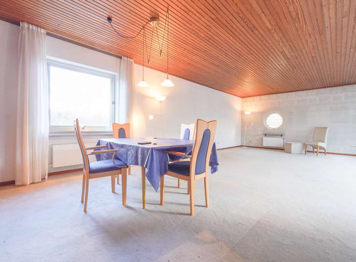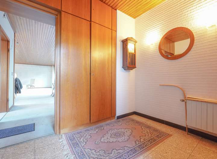 Die Einliegerwohnung hat einen separaten Eingang auf der Ostseite und verfügt über ein großes Wohnzimmer, ein Schlafzimmer, Küche und Essbereich sowie ein Badezimmer mit angeschossenem Abstellraum. Die Wohnung ist hell und funktional.