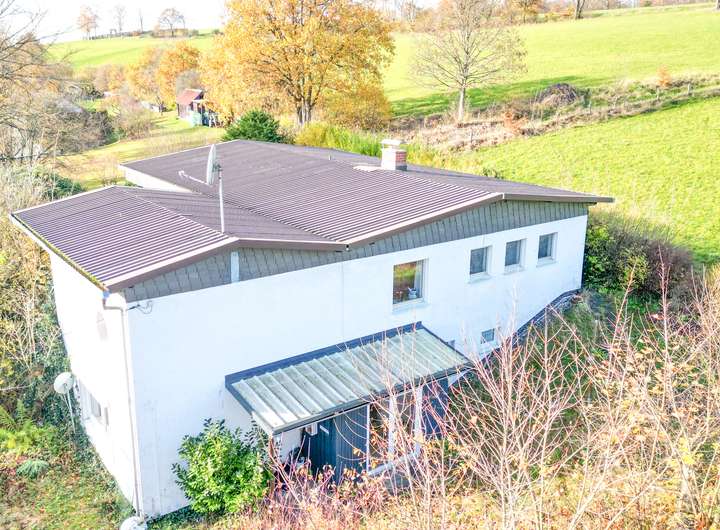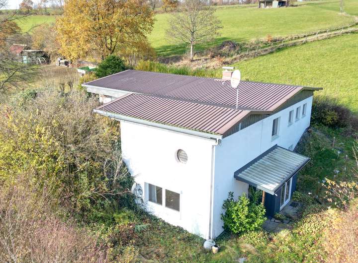 Die Immobilie hat ihren sonnigen Standort in einer ruhigen Sackgasse am Rande des Ortes mit angrenzenden Wiesen und wunderschönen Blick über das Tal.