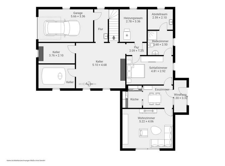 Kellerräume: 2 Kellerräume, Heizungsraum, Tankraum, Garage.