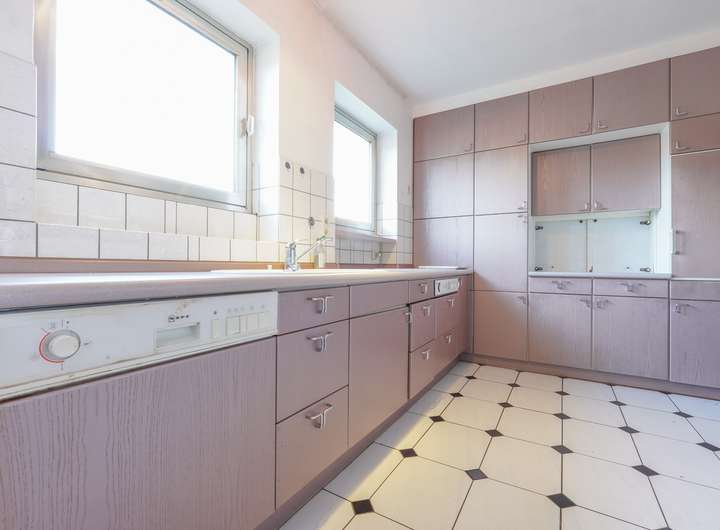 - Gepflegte Einbauküche mit Wandschrank und Durchreiche ins Esszimmer.
