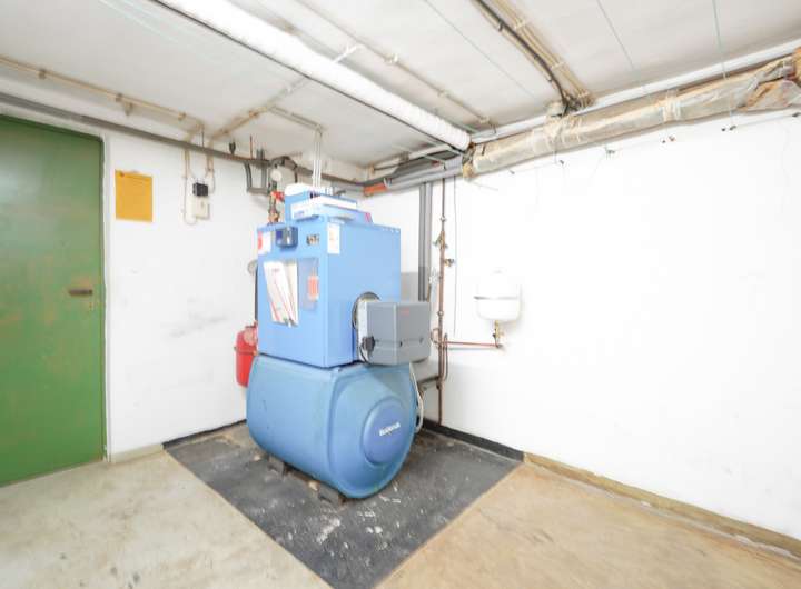 Der Keller verfügt darüber hinaus über zwei große Kellerräume, Garage, Tankraum und Heizungsraum. Die Buderus Ölheizung wurde 1987 erneuert. Es handelt sich um eine Niedertemperaturheizung.