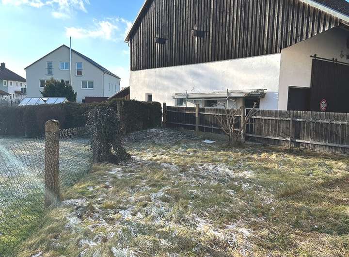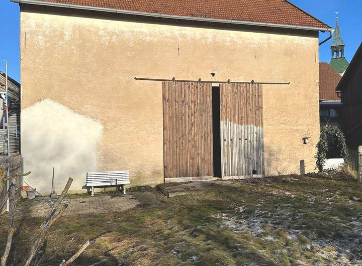 Die auf dem Grundstück befindliche Scheune kann zum Großteil mitbenutzt werden und bietet sich ideal als Lagermöglichkeit oder Werkstatt an. Neben der großen Zufahrt liegt hinter der Scheune noch ein nach Süd-West ausgerichteter Garten. Mit einer gepflasterten Terrasse kann dieser zum Essen und Grillen genutzt werden.