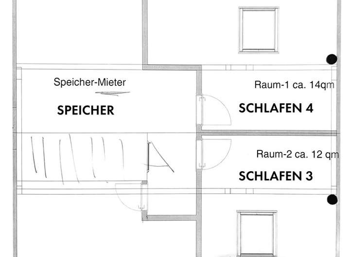 Der Großteil der Wohnfläche befindet sich im Obergeschoss, dort befindet sich Küche, Essen, Wohnen und Schlafen 1 - 2. Im Dachgeschoss befindet sich Schlafen 3 - 4 und ein Dachspeicher als Abstellmöglichkeit. Im Erdgeschoss befindet sich neben dem Vollbad im Obergeschoss noch ein Gäste-WC mit angrenzendem Gäste-Zimmer, welches sich anbietet als solches genutzt zu werden. Das Untergeschoss bietet weitere Abstellmöglichkeiten, sowie eine zentrale Ölheizung.