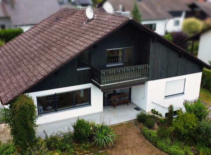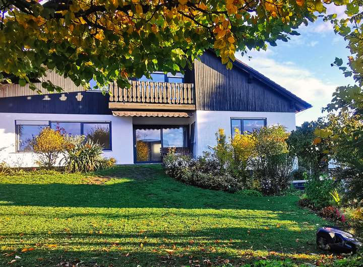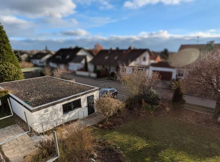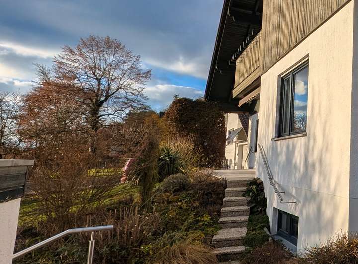 Das Anwesen befindet sich auf einer Anhöhe mit Südhang und traumhafter Aussicht in einem mit Einfamilienhäusern durchzogenen Viertel, das sehr ruhig gelegen und wenig befahren ist.