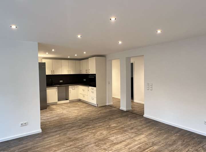 Der großzügige und offene Wohn- und Essbereich wurde mit einer schicken Einbau-Küche ausgestattet.