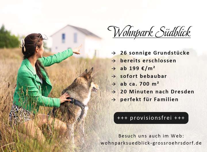 🏡 Herzlich Willkommen im Wohnpark Südblick, deinem exklusiven Areal für individuellen Wohnraum in Großröhrsdorf in der Nähe von Dresden! Unser Baugebiet umfasst 26 voll erschlossene und provisionsfreie Grundstücke, die sich perfekt für Familien und Paare eignen. Ideal, um dein Traumhaus zu verwirklichen.