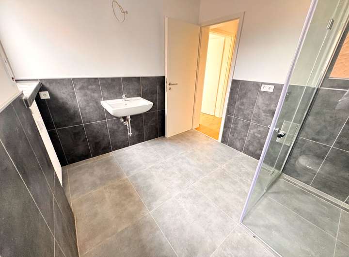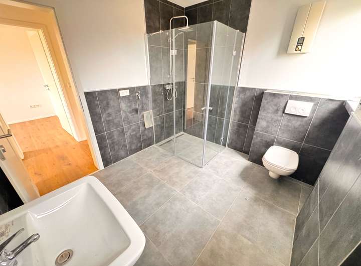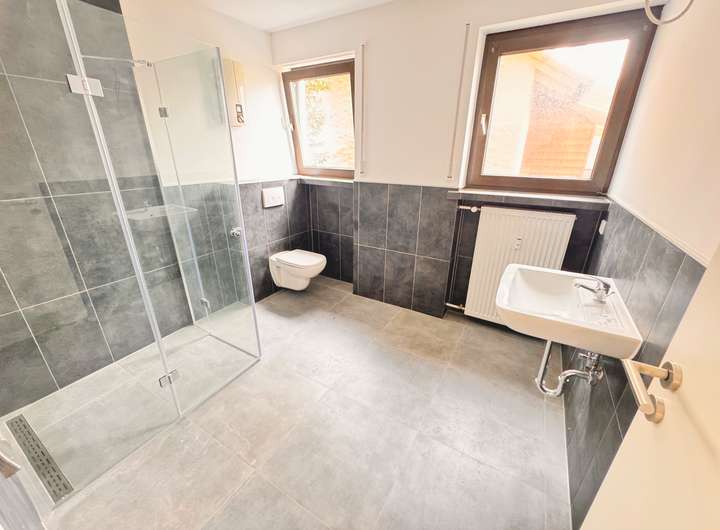 • Neue 60 cm x 60 cm Fliesen im Bad in Grau