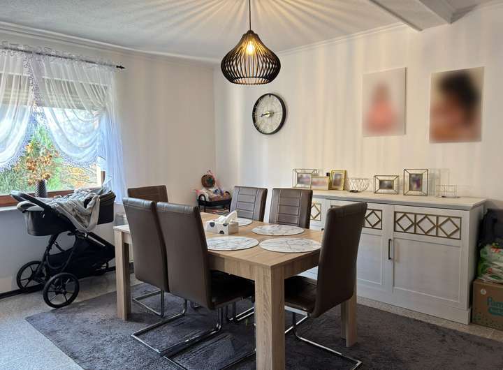 Das gepflegte Einfamilienhaus wurde ca.1969 in massiver Bauweise auf einem rund 410 m² großen Grundstück errichtet und bietet mit einer Wohnfläche von etwa 129 m² genügend Platz für eine Familie. Insgesamt verfügt die Immobilie über sechs Zimmer, die sich auf zwei Etagen verteilen. Im Erdgeschoss erwarten Sie ein Flur, ein Abstellraum, ein Gäste-WC, die Küche sowie ein Wohn- und Essbereich. Im Obergeschoss befinden sich drei gut geschnittene Schlafzimmer, ein Badezimmer und ein Balkon. Das Dachgeschoss hält zudem zwei weitere Räume bereit, die sich vielseitig nutzen lassen, beispielsweise als Arbeits- oder Hobbybereich. Das vollständig unterkellerte Haus bietet zusätzlichen Stauraum. Beheizt wird die Immobilie durch eine Nachtspeicherheizung sowie einen Ofen. Die Fassade wurde vor etwa 15 Jahren erneuert. Dank des gepflegten Gesamtzustands von Haus und Garten ist ein Einzug ohne größere Renovierungsarbeiten problemlos möglich.
