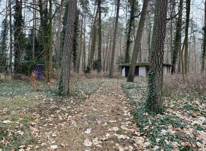 Das Grundstück befindet sich an einer befestigten Straße in ruhiger, grüner Waldlage. Die Umgebungsbebauung ist überwiegend von Einfamilienhäusern geprägt.