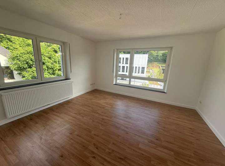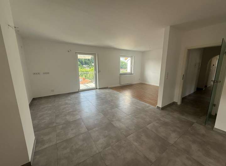 Diese kürzlich renovierte und lichtdurchflutete Etagenwohnung im 3. Obergeschoss der Hauptstraße 53–55 in Thaleischweiler bietet viel Platz und ein modernes Wohngefühl. Der große, offene Wohn- und Essbereich mit integrierter Einbauküche bildet das Herzstück der Wohnung und überzeugt durch seine angenehme Atmosphäre. Von hier aus gelangen Sie direkt auf den Balkon, der einen wunderschönen Ausblick über Thaleischweiler bietet.