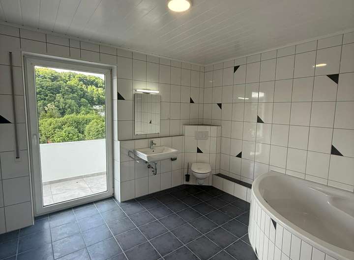 • Tageslichtbad mit Wanne, Waschmaschinenanschluss & kleinem Balkon