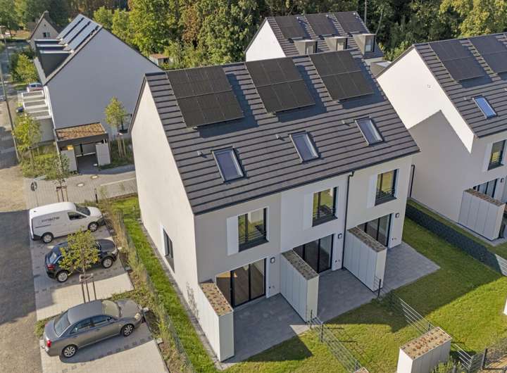 Du wohnst modern und energieeffizient im KfN-40-Standard. Das nachhaltige Energiekonzept mit unserem Partner OVE sorgt für niedrige Nebenkosten und schont die Umwelt. Eine zentrale Wärmepumpe liefert nachhaltige Nahwärme. Der Strom stammt überwiegend aus der eigenen Photovoltaikanlage; überschüssige Energie wird an die einzelnen Häuser verteilt. Das ermöglicht eine besonders effiziente Nutzung der Ressourcen und sorgt für energieeffizientes Wohnen.