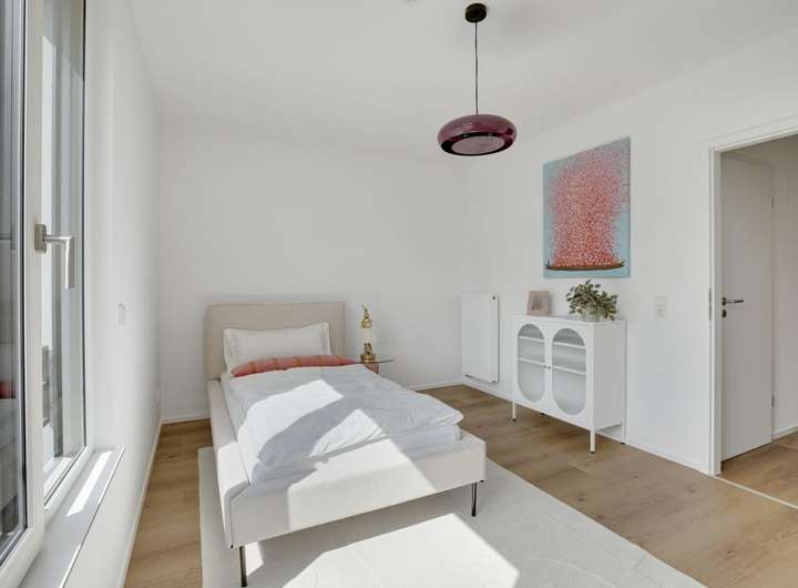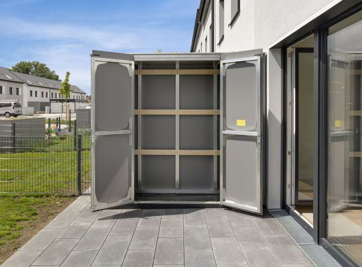 Jede Wohneinheit überzeugt durch hochwertige, stilvolle Ausstattung und clevere Details für deinen Alltag. Design-Vinylböden, elektrische Rollläden und moderne Sanitärelemente in den Bädern sorgen für echtes Wohlfühlambiente. Großzügige Wohnflächen, praktische Gartenboxen und vorgelagerte Schränke bieten dir extra viel Komfort und Stauraum.