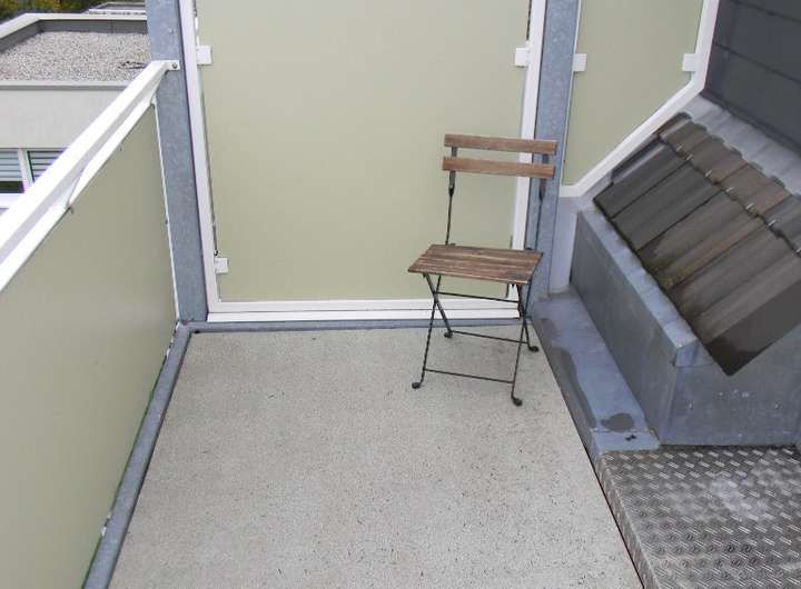 Die Dachgeschosswohnung befindet sich in einem Sechs-Parteienhaus.