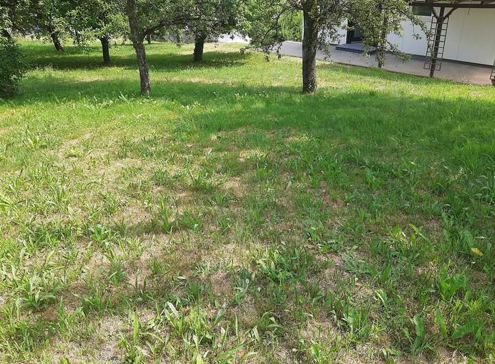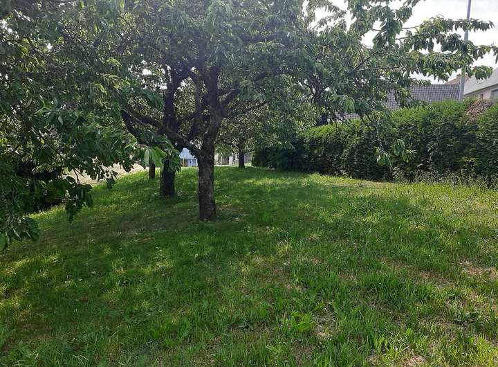 Mit einer Fläche von 1.277 m² ist das Grundstück überdurchschnittlich groß. Es befindet sich in einer leichten Hanglage zwischen bestehender Wohnbebauung im Dorfgebiet.