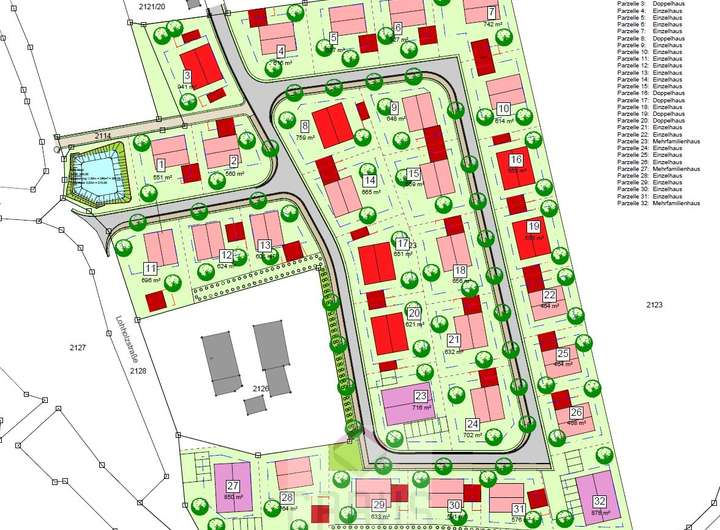 - 32 Bauplätze für Einfamilien-, Doppel- und Mehrfamilienhäuser