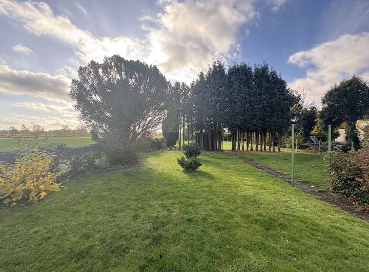 Das ca. 1.081 m² große Grundstück ist liebevoll und pflegeleicht gestaltet. Der Garten lädt zum Verweilen ein und bietet ausreichend Platz für Spiel, Freizeit oder Erholung im Grünen. Besonders hervorzuheben ist der herrliche, unverbaubare Blick über die angrenzenden Felder.