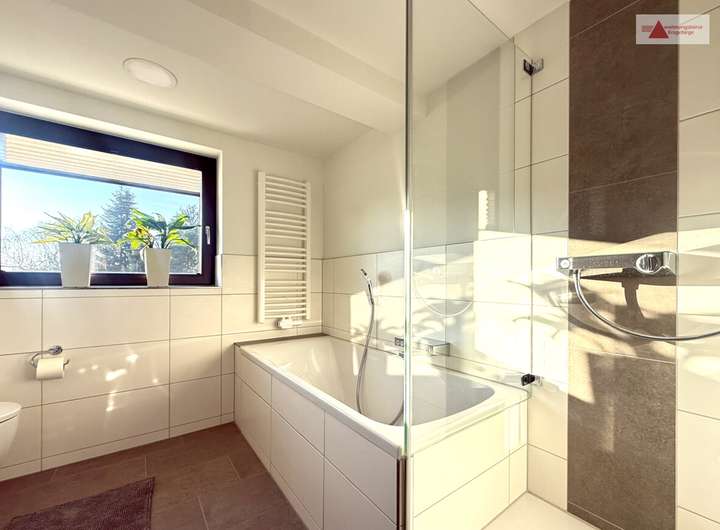 Die Doppelhaushälfte bietet insgesamt 4 Zimmer, einen großzügigen Wohn- und Essbereich und eine moderne Einbauküche, ein helles Tageslichtbad sowie ein separates Gäste-WC.