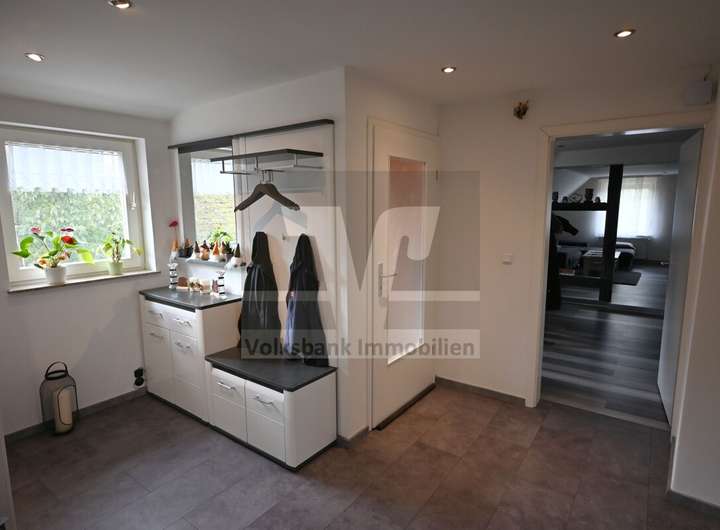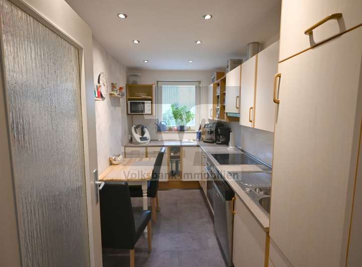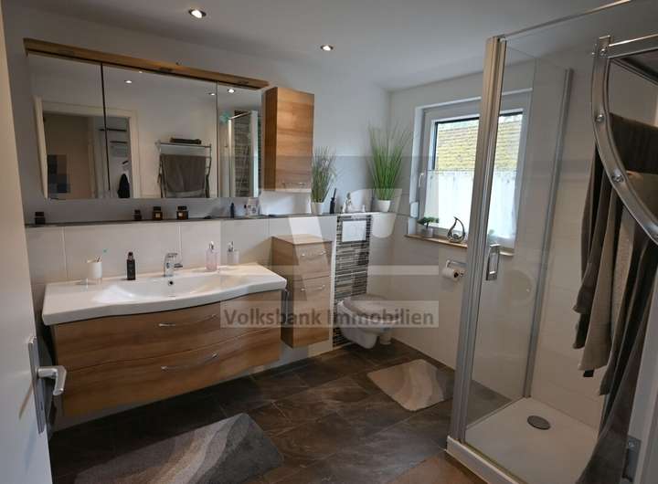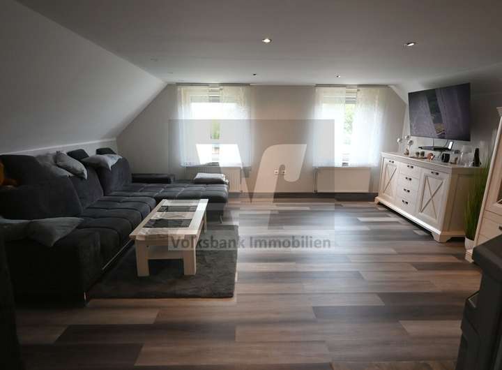 + OG 3 Zi. ca. 87 m², Flur, Wohn- Esszimmer, Küche mit EBK, Duschbad Bj 2021, Vorratsraum, Abstellräume, Zugang Dachboden/ggf. Ausbaureserve