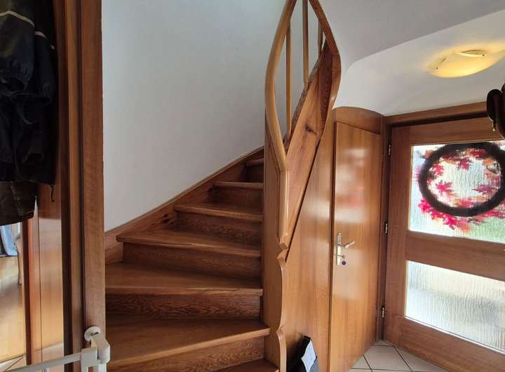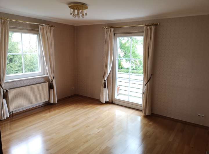 Parquet flooring, tiles, high-quality laminate flooring, fitted kitchen, balcony, modern oil heating, bathrooms with natural light. Pergola in the big garden.