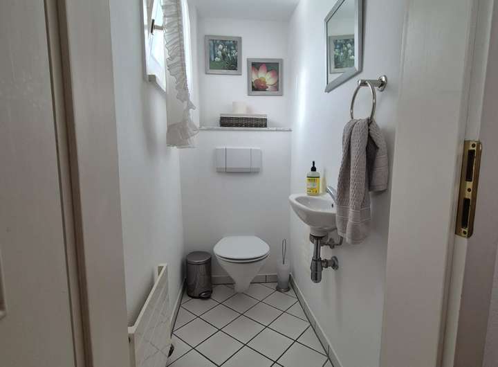 Die charmanten Zimmer sind sehr praktisch eingeteilt: EG: Bad, Küche, Eßzimmer, Wohnzimmer / 1. OG: separate Toilette, Badezimmer, 3 Schlaf- bzw. Arbeits-Zimmer.