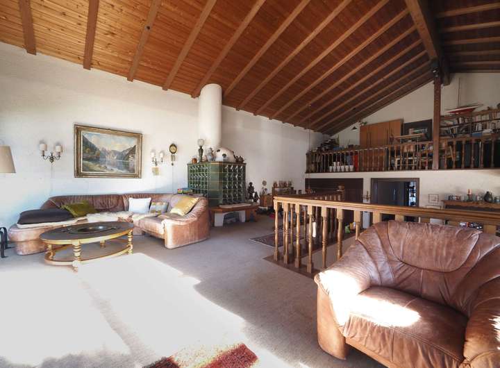 Das Einfamilienhaus wurde 1972 in massiver Bauweise mit 30er-Ytong-Mauerwerk errichtet. Es befindet sich in Traunstein, nahe des Ettendorfer Kircherls, einer sehr beliebten und sonnigen Wohnlage mit absolut unverbaubarem Blick über Traunstein und die Chiemgauer Alpen. Das Umfeld ist geprägt von Ruhe, Natur und einem beeindruckenden Weitblick. Der Garten ist so angelegt, dass er von außen nicht einsehbar ist.