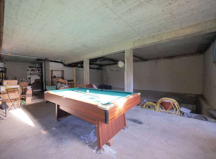 Der ca. 180qm große Keller wurde in massiver Betonbauweise errichtet. Hier befinden sich mehrere Lager- und Technikräume, ein Weinkeller, eine Werkstatt sowie eine große Schwimmbadhalle mit Schwimmbecken.