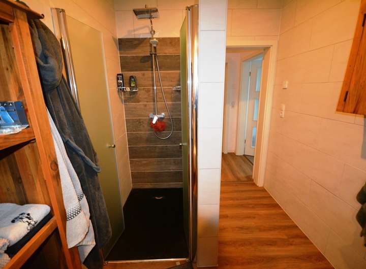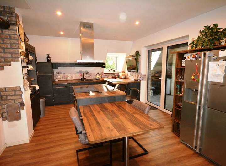 Beheizt wird das Haus durch eine Wärmepumpe und einen Kaminofen. Das Haus hat eine PV-Anlage mit 12,15 kwh und einen Stromspeicher von 7,80 kwh.