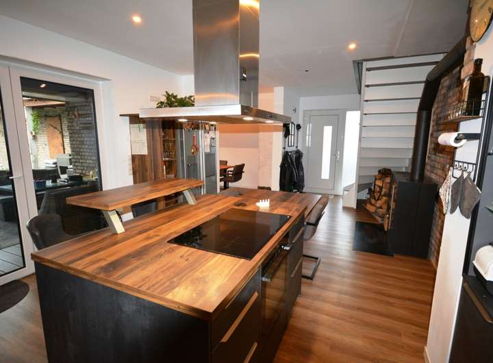 Offene Küche mit Esszimmer, Wohnzimmer, Bad, Hauswirtschaftsraum, Überdachte Terrasse