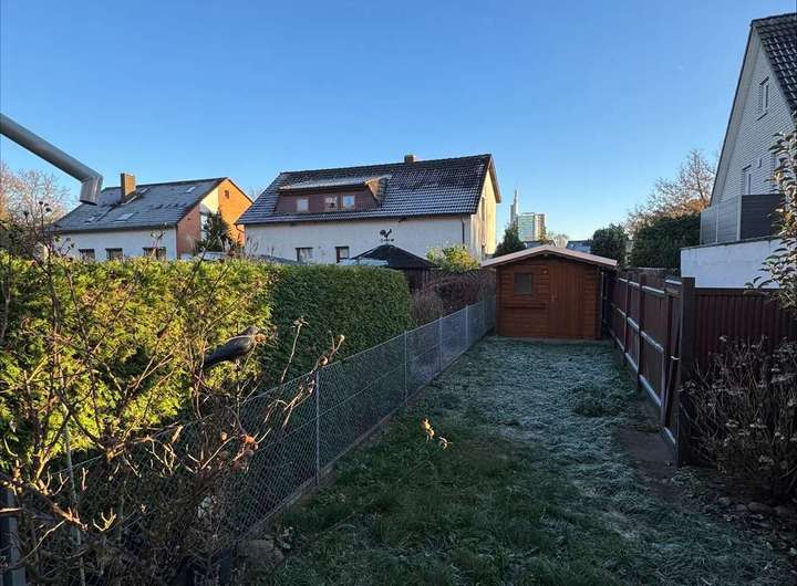 Der Garten ist pflegeleicht angelegt und lädt zu erholsamen Stunden ein. Er bietet Ihnen ein Gartenhaus für Ihre Gartengeräte, Fahrräder usw..