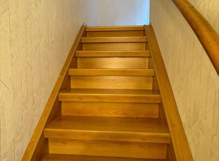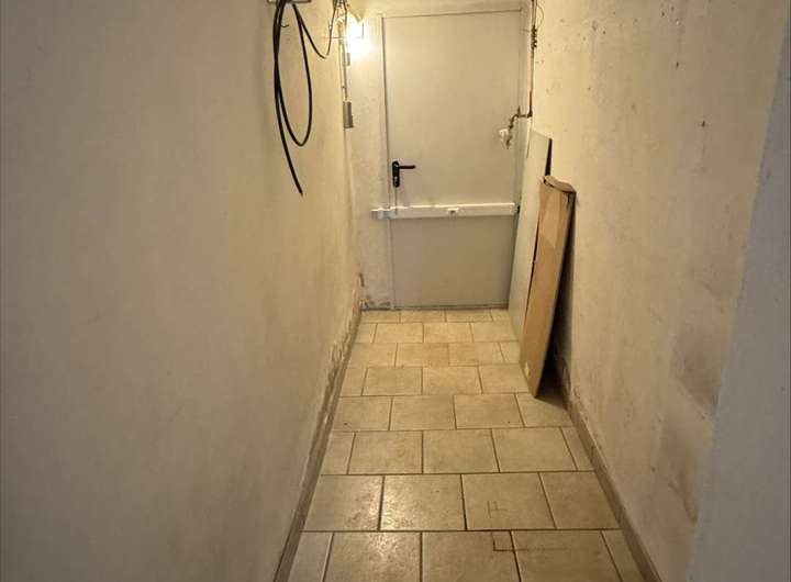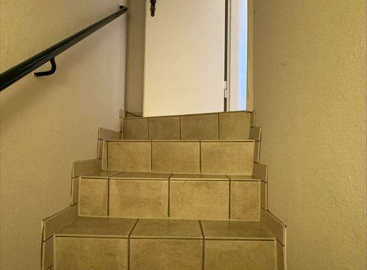 • Massive Treppe mit Fliesenbelag zum Kellergeschoss