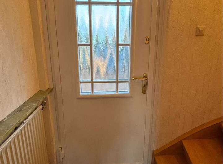 Sie betreten das Haus über drei Stufen und befinden sich im Windfang, von welchem linksseitig eine moderne Holtreppe ins Ober- und Dachgeschoss des Hauses führt. Linksseitig wurde die Küche angeordnet, Welche mit zeitlosen Einbauküchenmöbeln ausgestattet ist. Gegenüber der Küche befindet sich der Kellerzugang, was für kurze Wege zum Vorrats- und Abstellbereich sorgt.