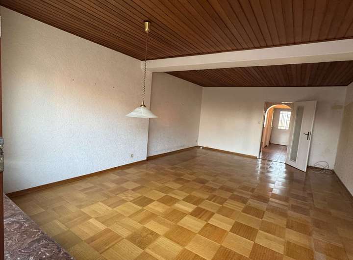 Das Herzstück des Hauses ist das Wohn-/Esszimmer, welches vor einigen Jahren durch einen Anbau auf eine großzügige Größe gebracht wurde. Das Wohn-/Esszimmer gestaltet sich durch die Fensterelemente hell und freundlich. Durch den klassischen rechteckigen Grundriss sind Ihren gestalterischen Ideen keine Grenzen gesetzt.