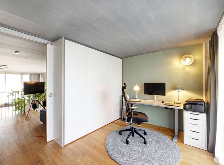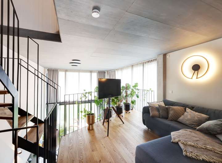 • Offener Übergang zwischen Erdgeschoss und Galerie, der die vertikale Raumverbindung betont und natürliche Lichtführung inszeniert