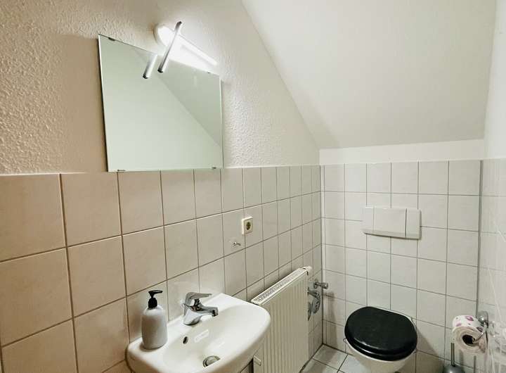 Das Badezimmer ist mit einer Badewanne ausgestattet – perfekt zum Abschalten nach einem langen Tag. Zusätzlich gibt es eine separate Toilette.