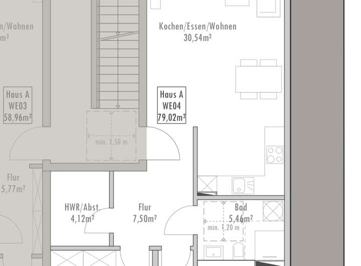 1. OG rechts / 3 - Zimmer Neubauwohnung / 1.344 € p.m. inkl. Heiz- und Betriebskosten